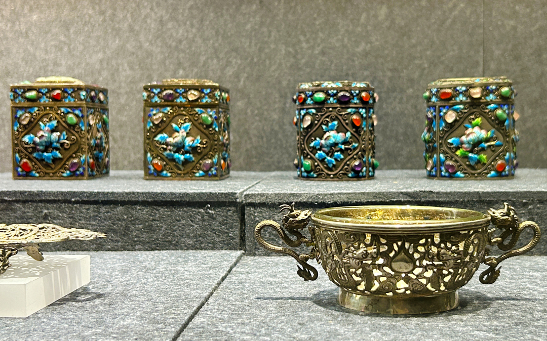 关于十三行历史的陈列讲述着清代广州的繁盛,广彩、珠宝、首饰、家具、油画、银器等展品,更诠释着何为精美奢华、雍容华贵。以象牙雕刻的国际象棋,做工精良,细节满满;洋溢着中国风的瓷器,也是处处透露着奢华。