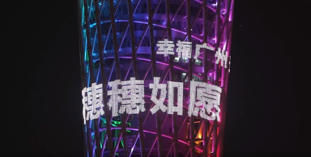 每晚广州塔都会亮起“晚安”的问候语,给在外奔波劳累一天的夜行者无比安慰。同时,广州塔也通过各种亮灯,传递城市正能量。