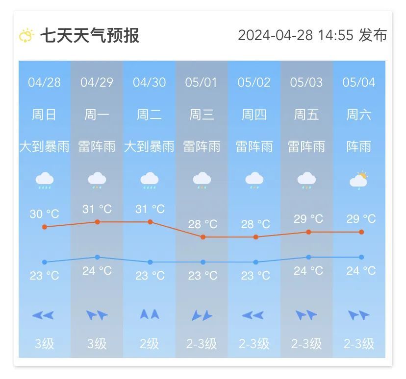 展望“五一”假期,雨势有所减弱,主要为雷阵雨天气,请市民朋友留意气象部门发布的最新天气信息,合理安排出行计划。