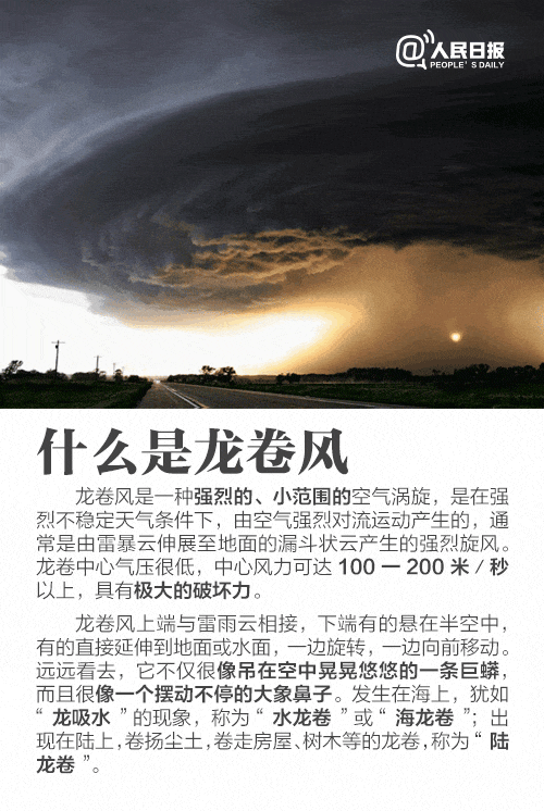 龙卷风是一种很少见的局地性、小尺度、突发性的强对流天气,是在极不稳定的天气状况下产生,通常发生在强不稳定的大气层结和大的垂直风切变中。