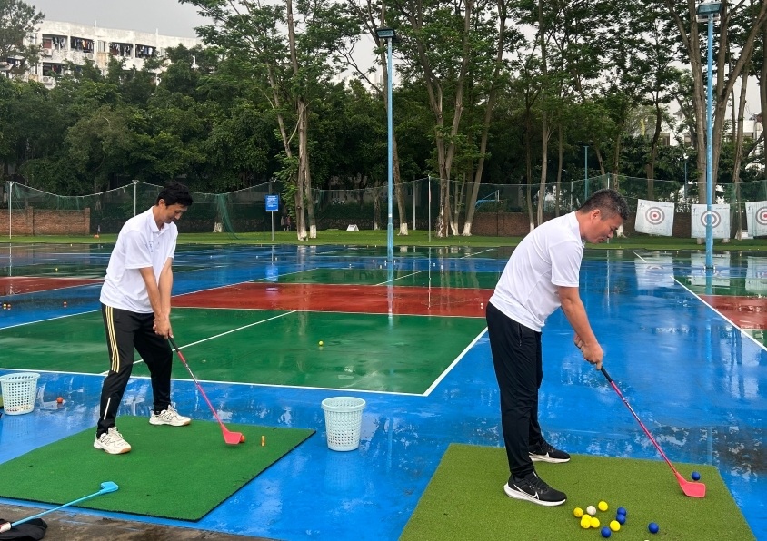 广东培正学院体育学院院长曹卫介绍,现代捶丸是2023年开始推广的一项体育运动,就是要弘扬继承中华传统文化,践行文化自信,让中华古老的捶丸运动绽放异彩;为市民提供一项可以与高尔夫相互对接的休闲运动,为全民健身和百姓幸福生活服务。它不需要专门修建场地,有空地就可以开展。可以双手、单手击球,可以左、右击球,简单易学。