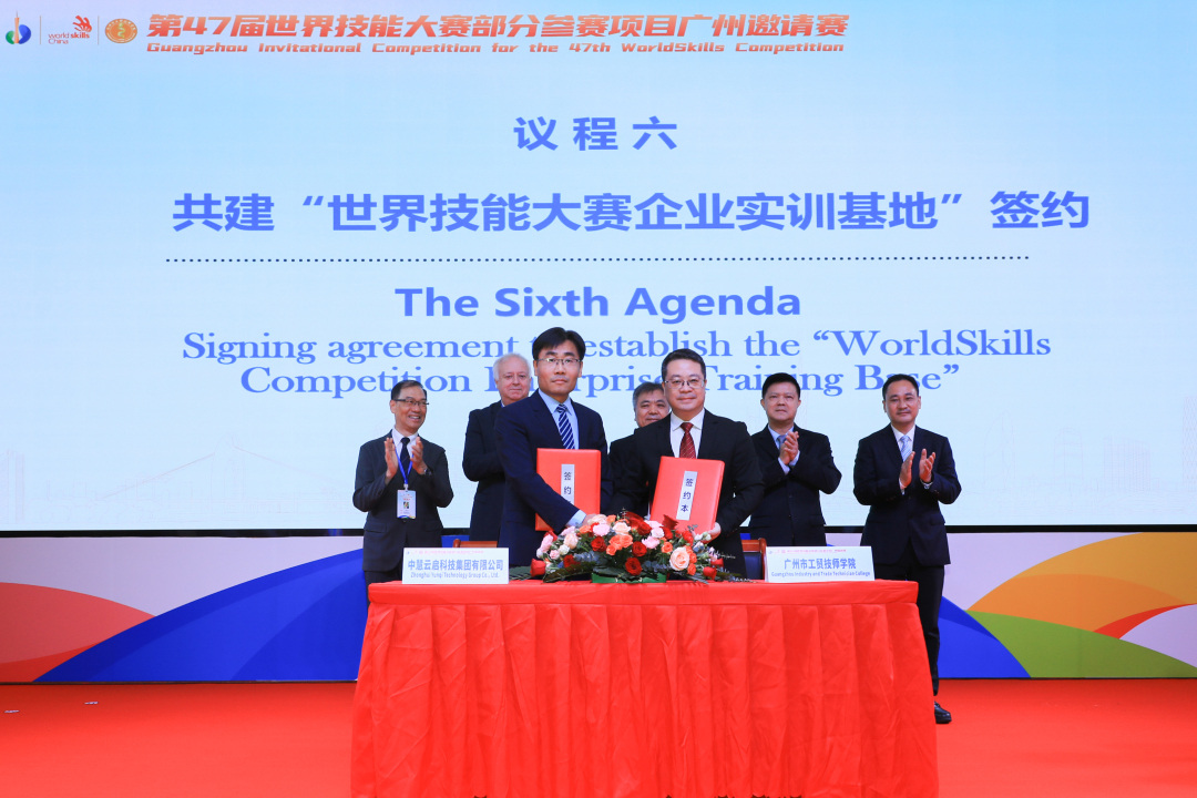 广州市工贸技师学院与韩国全球技能转移研究所、第47届世界技能大赛官方赞助商中慧云启科技集团有限公司签署合作协议。