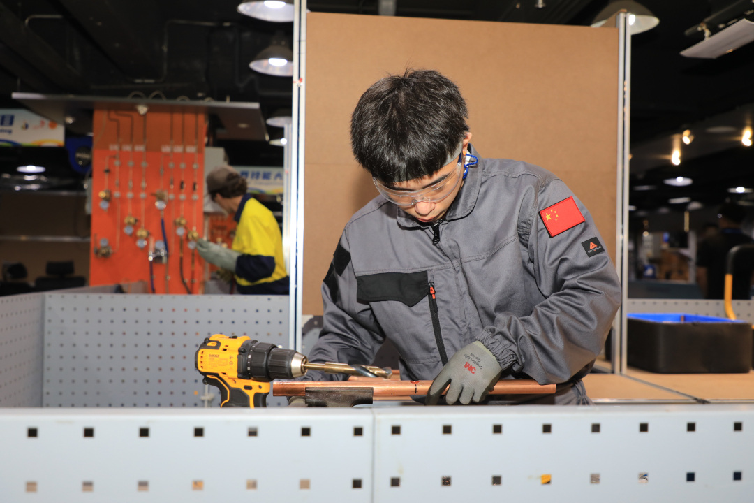 制冷与空调项目中国选手阮康在比赛中。