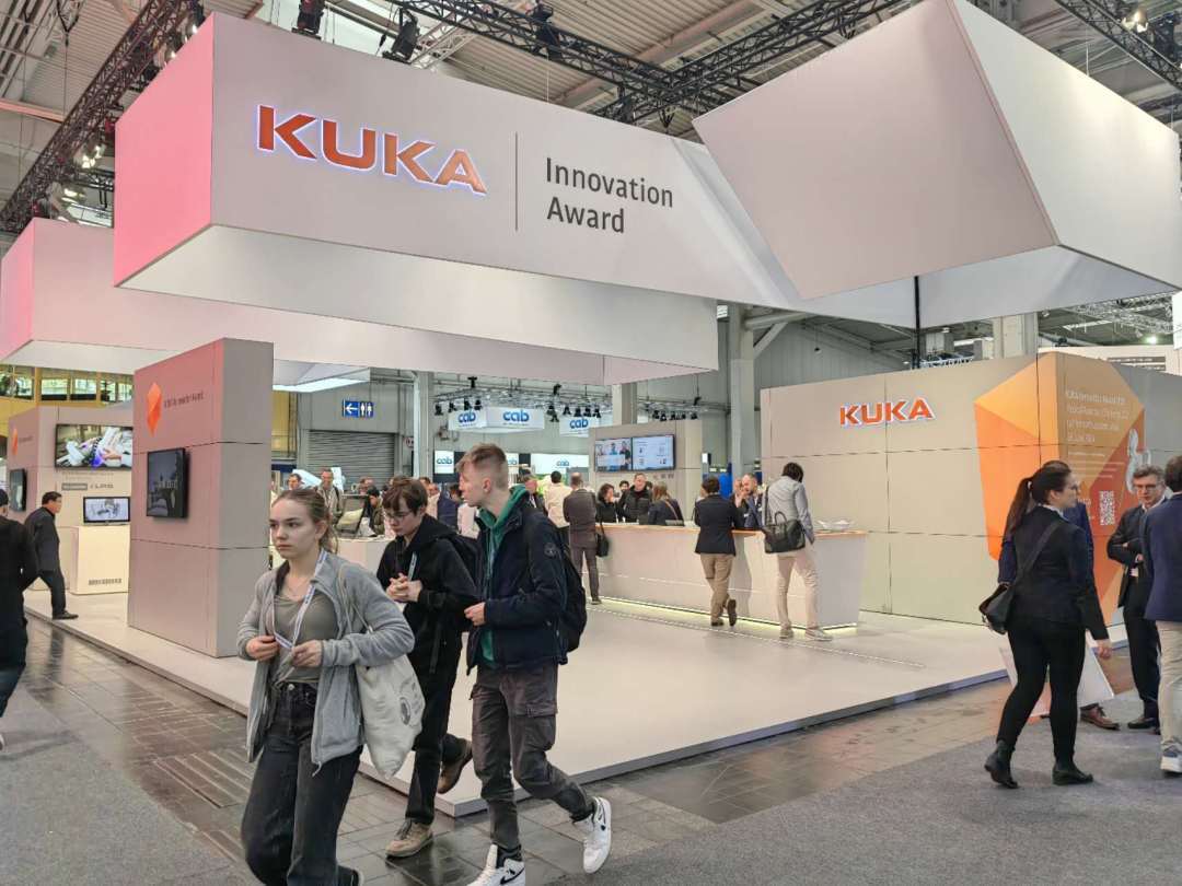 今年汉诺威工业博览会的展会主题是“为工业可持续发展注入活力”。此次参展,嘉腾的展位是5-D34,在5号馆中间,双主通道上,位置非常好,我们带来了三款移动机器人(AGV)新品,全程动态展示,向观众展示嘉腾机器人智能搬运与跑腿的魅力。我了解到,今年展会开了15个馆,比去年少了3个馆,但人流量还是很不错的,新老朋友来展位交流的不少,中国的企业也来了很多。