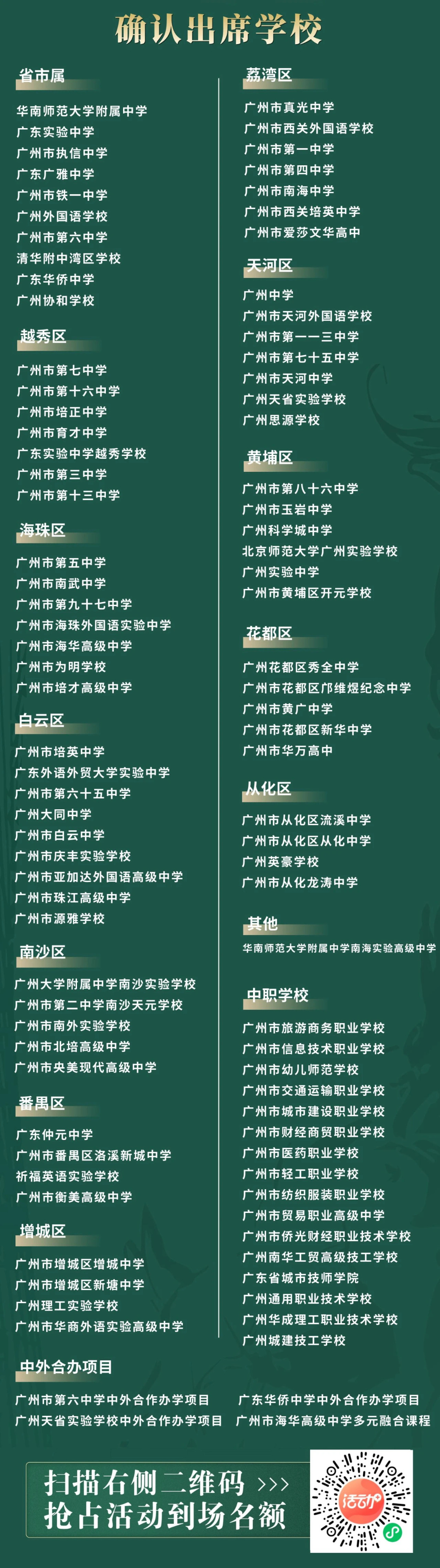 省市区属中学全覆盖,前八高中阶段学校领衔纷亮相,广州各区龙头齐聚首,多维度了解热校,锁定目标学校。
