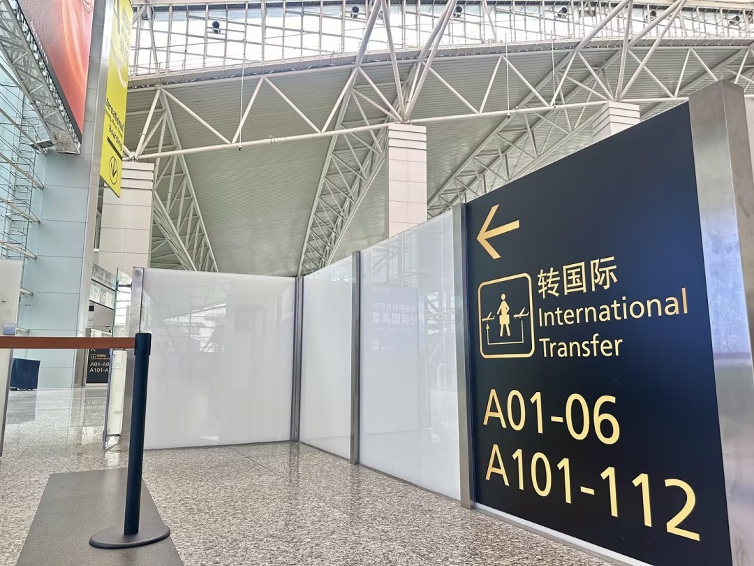 “国内转国际”旅客抵达白云机场后,中转服务员将接机,并引领中转旅客上至东三指廊三层东航中转休息厅门口位置,指引旅客根据国内转国际中转标识前往国内安检与国际安检的中间通道,再经过海关、边防检验,抵达国际出发登机口。
