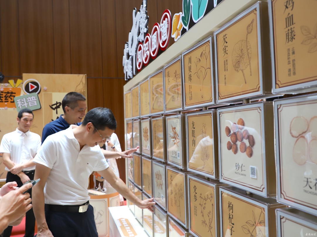 市民黄阿姨告诉记者:“这两天带孙子来图书馆发现多了一个中医角,最喜欢这个常用中药知识图谱,上面展示的药材都是家庭常用的,大部分是药食同源的药材,内容简洁明了,很容易记住。要是担心记不住,还可以用手机拍下带有二维码那一面,回家打开手机扫码又可以继续学习,这种设计很棒!”
