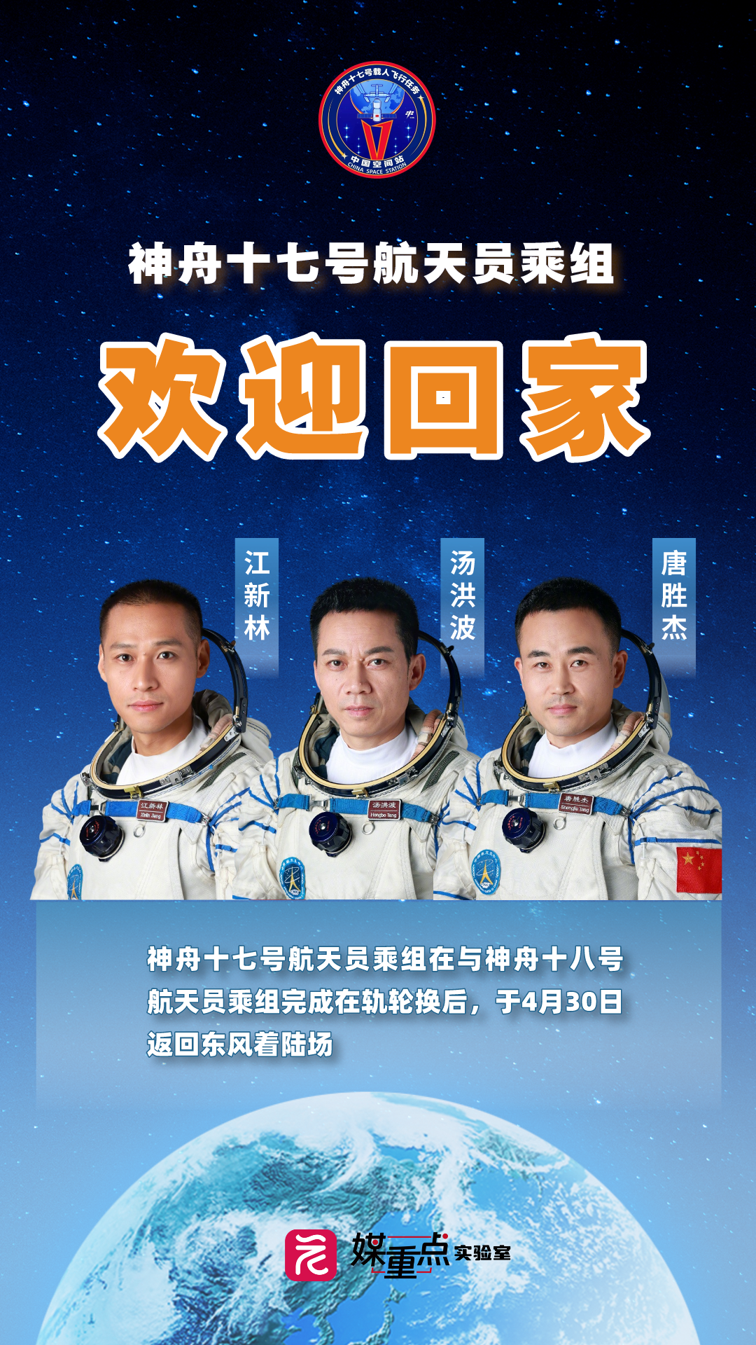 太空出差的这半年时间,每一天过得非常充实、神奇和美妙,如今回到祖国的怀抱,我的内心非常激动,为我们伟大的祖国感到无比的骄傲和自豪。后续我会继续努力做好恢复工作,争取早日重返太空。
