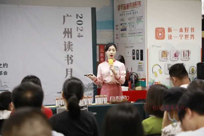 在馆员陈剑虹的介绍之后,关洁婷给读者们带来茶知识科普讲座。她首先介绍了广州图书馆的馆藏文献《茶经》:“作为中国古代茶文化的集大成者,不仅详细记载了茶的种植、采摘、制作和品鉴等方面的知识,还蕴含了丰富的哲学思想和人生智慧,欢迎大家借阅,把这本好书带回家。”