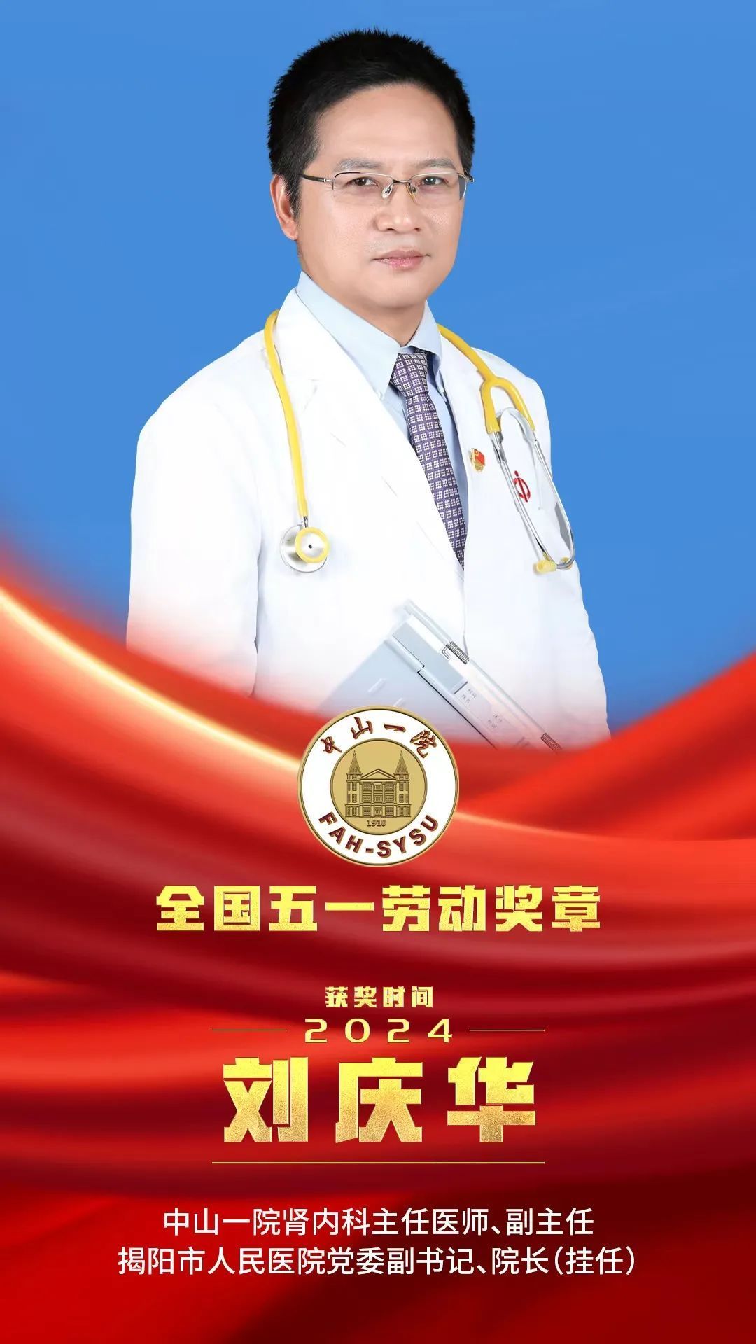 4月29日,广州日报新花城记者从中山大学附属第一医院(以下简称“中山一院”)获悉,该院肾内科副主任刘庆华教授荣获“2024年全国五一劳动奖章”。
