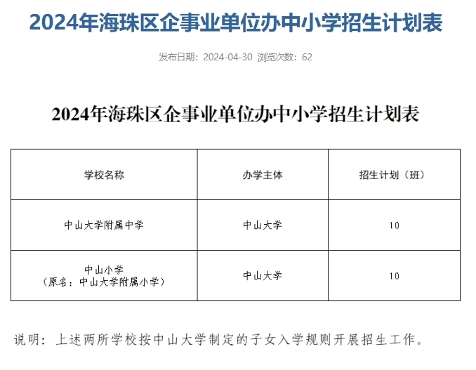 值得家长关注的还有,中山大学附属中学、中山小学(原名中山大学附属小学)将按照中山大学制定的子女入学规则开展招生工作。