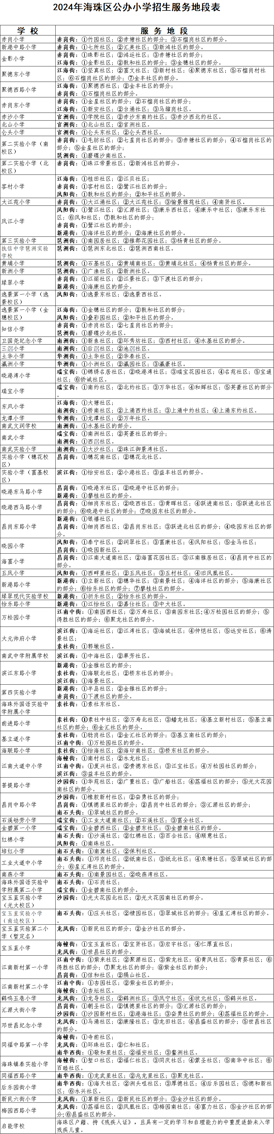 海珠区教育局关于印发《2024年广州市海珠区义务教育学校招生工作实施细则》的通知