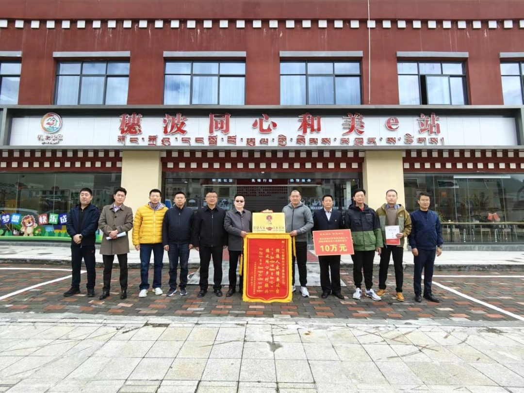最后,双方在穗波同心和美e站举行了结对帮扶揭牌仪式。李炽煐董事长代表广州市猎德经济发展有限公司向中共扎木镇扎木社区捐赠了援助资金10万元。扎木社区党委副书记达嘎巴珠向广州市猎德经济发展有限公司赠送了“猎德人家情系波密 穗波同心乡村振兴”的锦旗,并代表社区对广州市猎德经济发展有限公司的支援帮扶表示衷心的感谢。