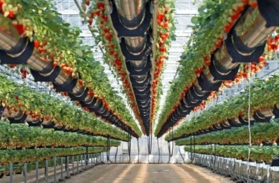 这片空中草莓园足足15亩大,走进园内,衣服都沾上了果香。草莓种在空中,踮起脚尖就吃得到,而且都是无土培植,可以现摘现吃。