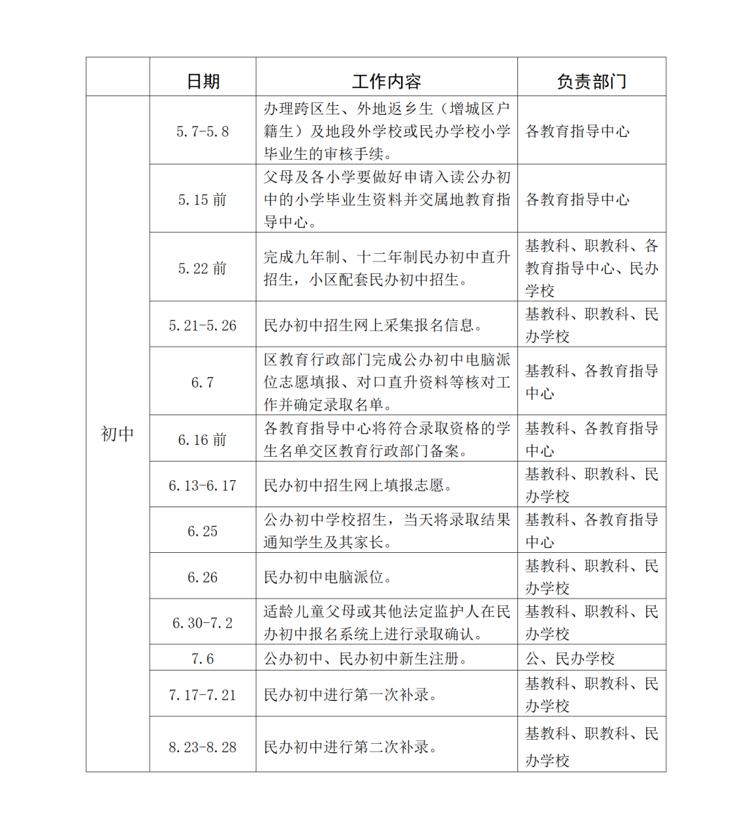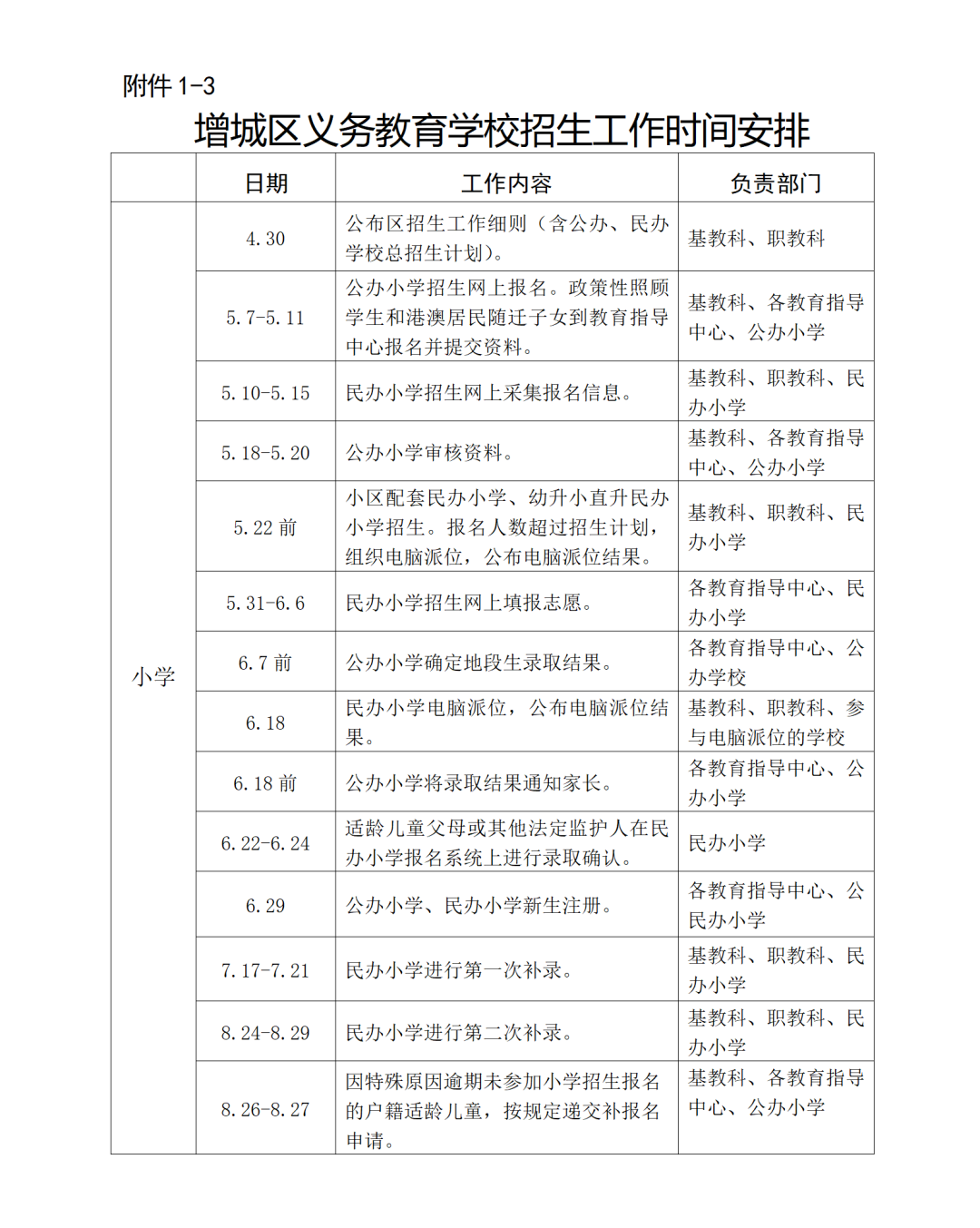 增城区义务教育学校招生工作时间安排