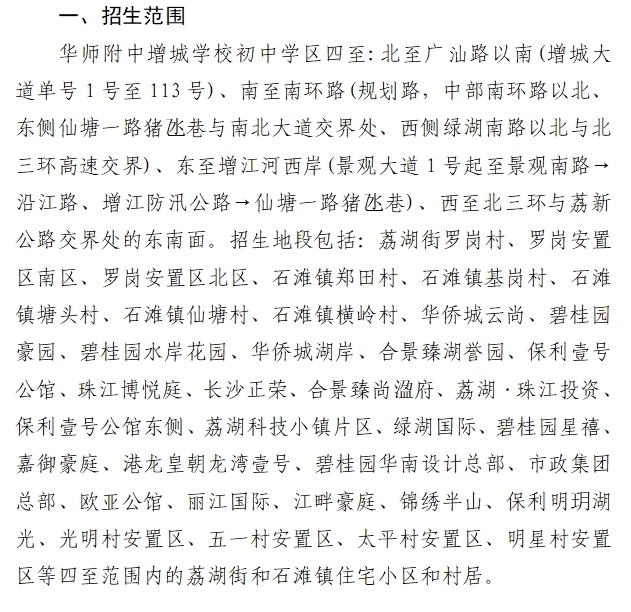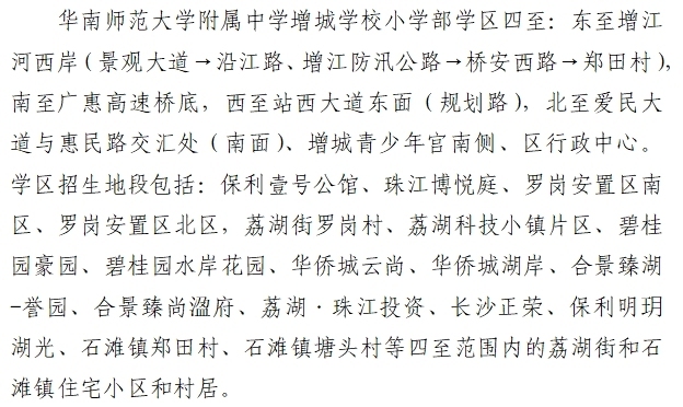 华附增城初中部就近入学招生范围