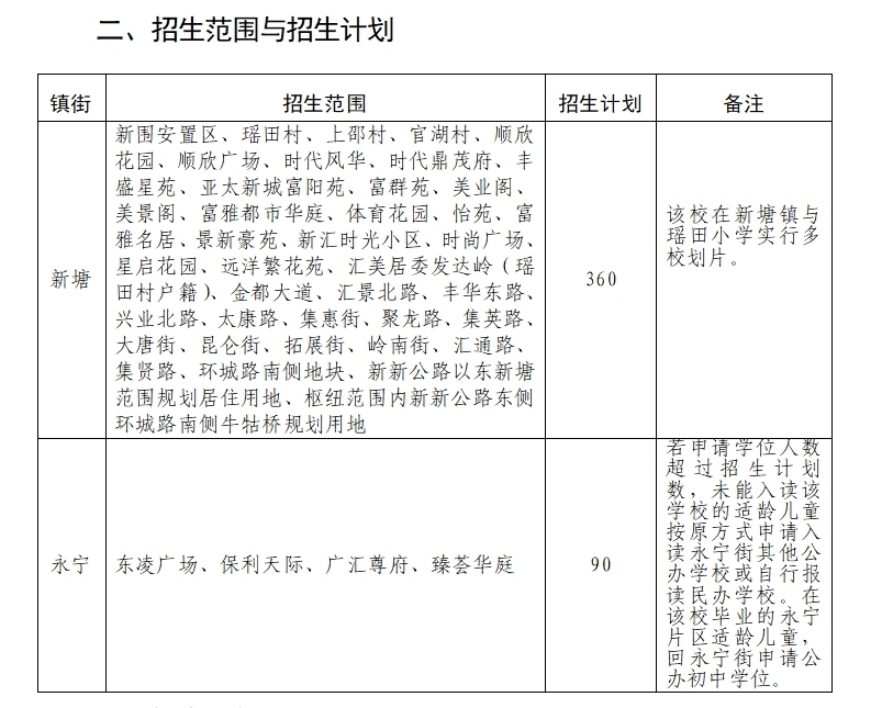 《2024年增城区新泉小学招生工作方案》显示,今年增城区新泉小学同时在新塘镇和永宁街的相关区域进行招生。