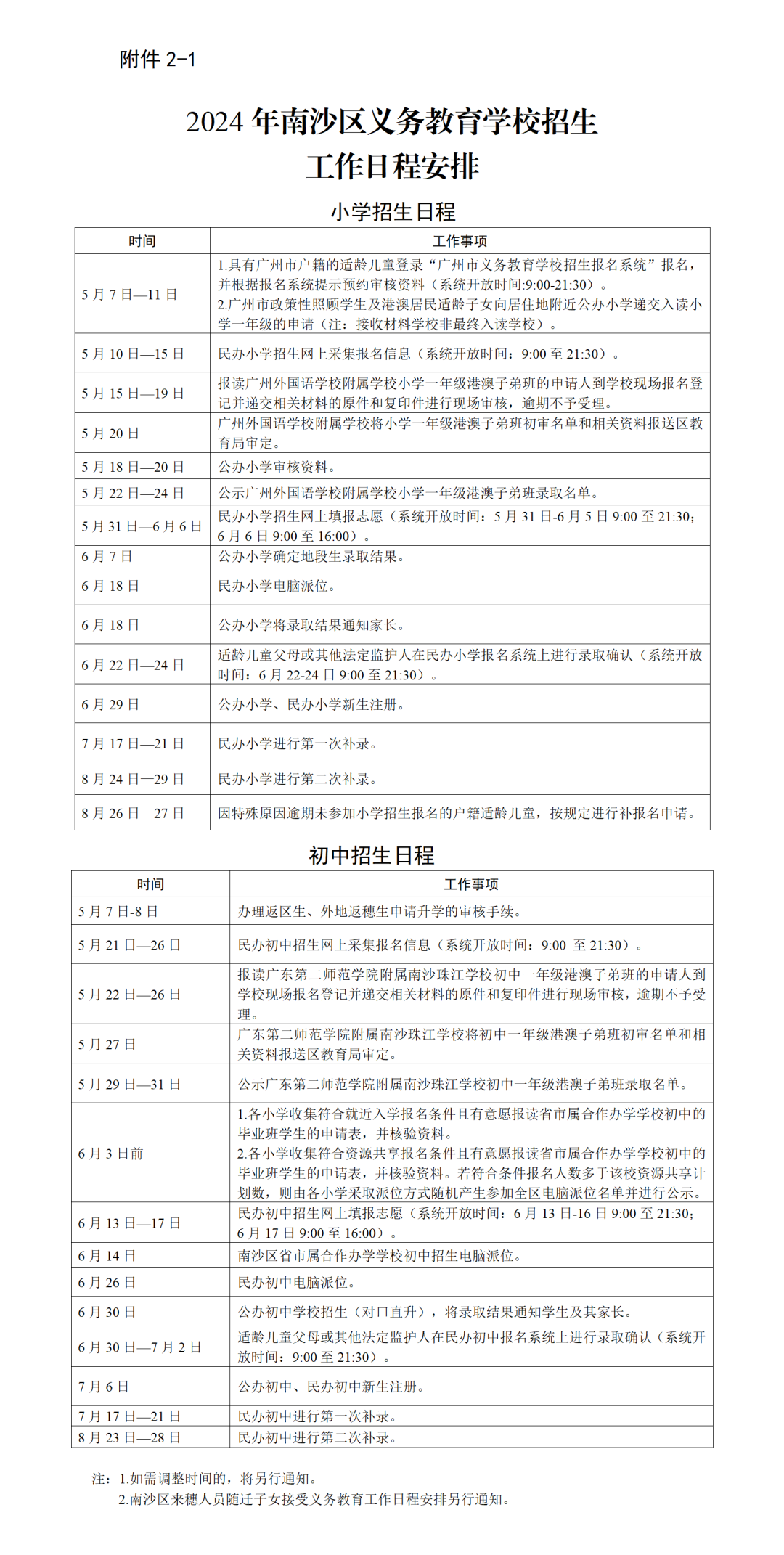 关于印发《2024年南沙区义务教育阶段学校招生计划、招生地段》的通知