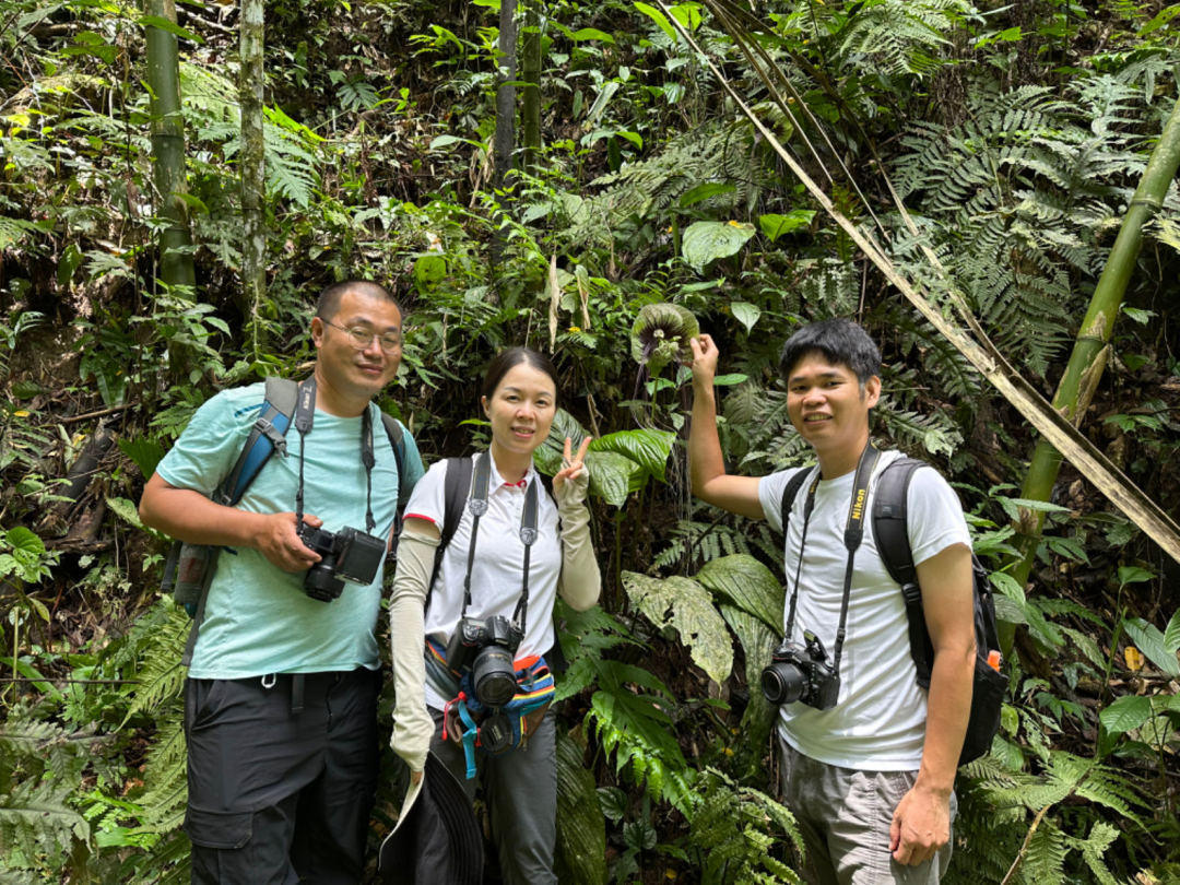 华南国家植物园科研工作者与野外的扇苞蒟蒻薯