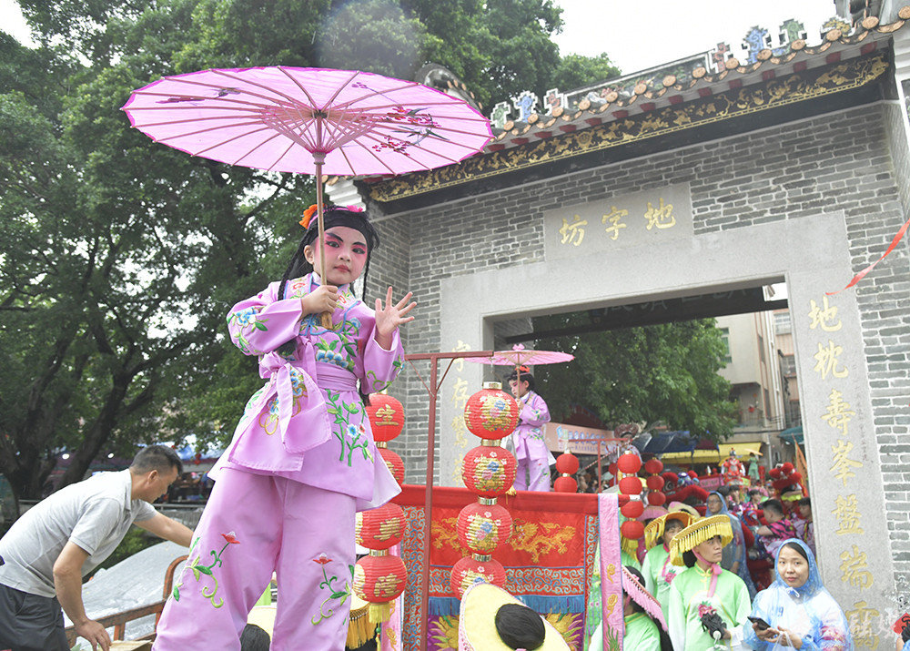 “‘娘玛诞’飘色巡游是我们潭山村一年一度的盛事,所以今天都叫了亲戚朋友过来观看巡游表演。”村民雷女士表示,她专门准备了三围酒席招呼亲戚好友,让大家一起来感受潭山飘色巡游的热闹气氛。