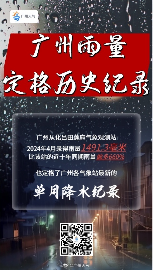 今年4月广东天气极端,超常态,广州从化吕田莲麻气象站录得月雨量1491.3毫米,比同期多6.6倍!大幅刷新广州最新的单月降水纪录!从化国家站4月雨量也较同期多三倍!