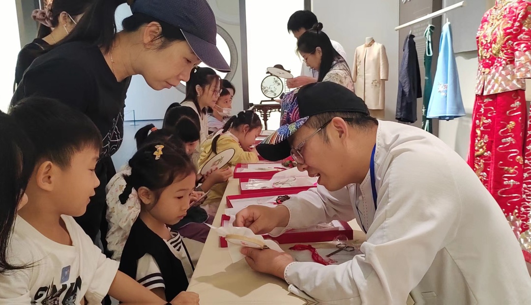 王新元教小朋友绣广绣