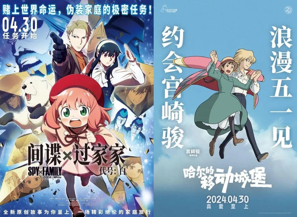 其中,《间谍过家家 代号:白》《哈尔的移动城堡》《猪猪侠大电影:星际行动》均为动画电影。