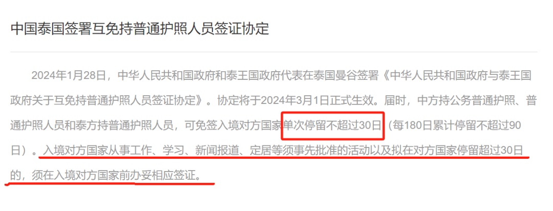以泰国为例,这个美丽的东南亚国家对中国游客实行免签政策,但仍有诸多注意事项。比如,在停留时间方面,单次停留不超过30日,每180天累计停留不超过90天;在入境事由方面,入境对方国家从事工作、学习、新闻报道、定居等须事先批准的活动,仍要在入境前向对方签证机关或主管部门提出申请。