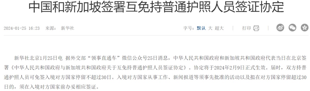 中国和泰国、新加坡是全面互免,缔结互免签证协定的两个国家或地区,只要本国公民持协定规定的有效护照或国际旅行证件,便可以在对方国家或地区享有通常为30天的免签证停留;但如果停留时间超过30天,或在当地学习、居住、工作等,仍需在入境前向对方签证机关或主管部门提出申请。