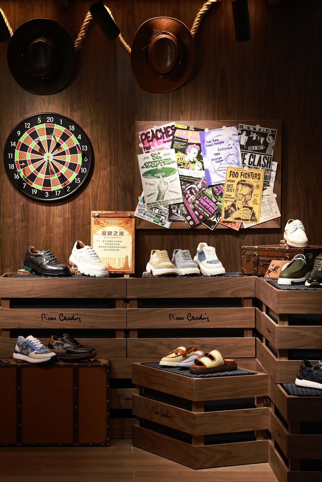 快闪店现场,品牌以西部牛仔酒馆为概念主题风格,顺应当下泛户外热潮,让消费者无须出远门也能沉浸式体验泛户外的乐趣,进一步渗透至当下年轻人群体青睐的消费场景。品牌方透露,皮尔卡丹鞋品四大系列以不同场景呈现于快闪店内,以崭新的风格理念,打破老用户对品牌的固化印象。另外还有精彩的手工皮革DIY活动,呈现精雕细琢的“匠人精神”。