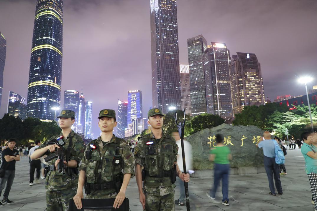假期首日,广州塔、北京路等景点人流量密集,跃居全国热门景点前列。担负执勤任务的广州支队派出执勤兵力,在景区各个路口、重点区域进行巡逻警戒,维护出行秩序。在北京路步行街,人流交织密集,气氛红火。针对此情况,武警广州支队执勤官兵结合交通和客流情况,引导游客有序出行,防止因拥挤发生踩踏事件。