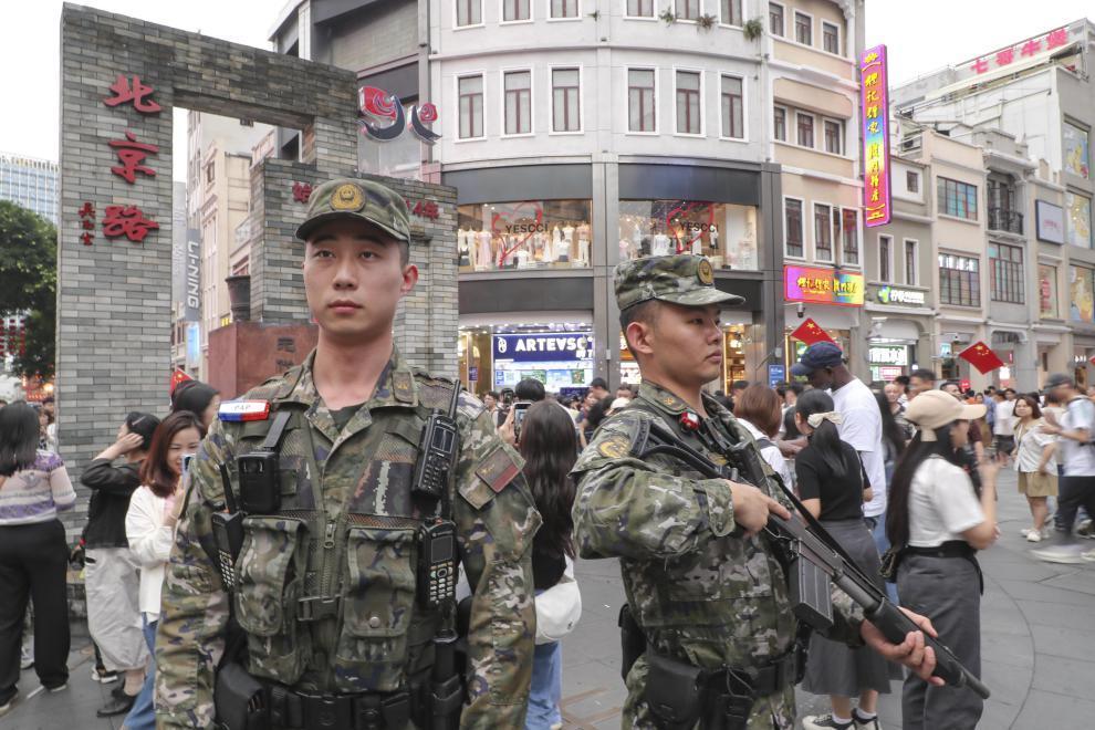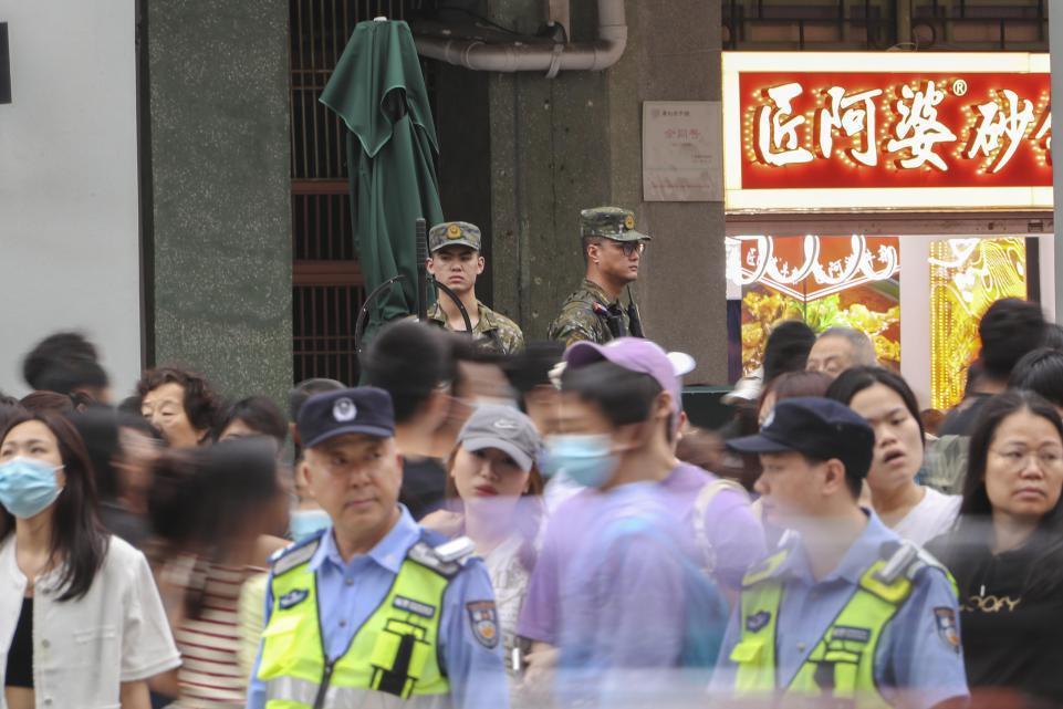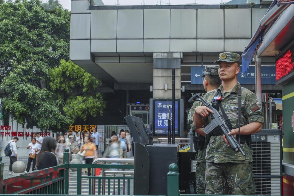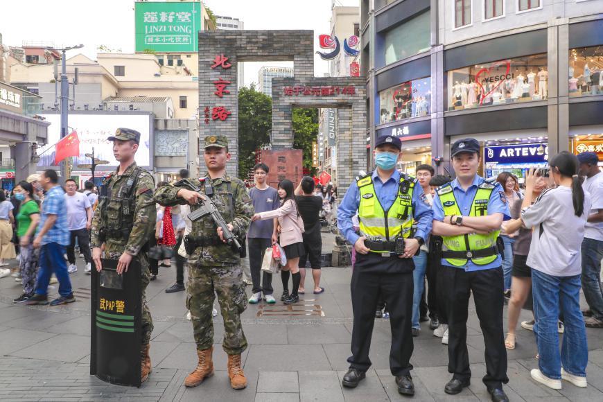 “五一”节日期间,广州作为最热门的旅游城市之一,吸引全国各地的游客纷至沓来。为更好应对“五一”小长假期间的客流高峰,武警广州支队在节日期间派出执勤官兵在高铁站、火车站、商圈等重点区域开展巡逻防控工作,守护人民群众祥和过节。