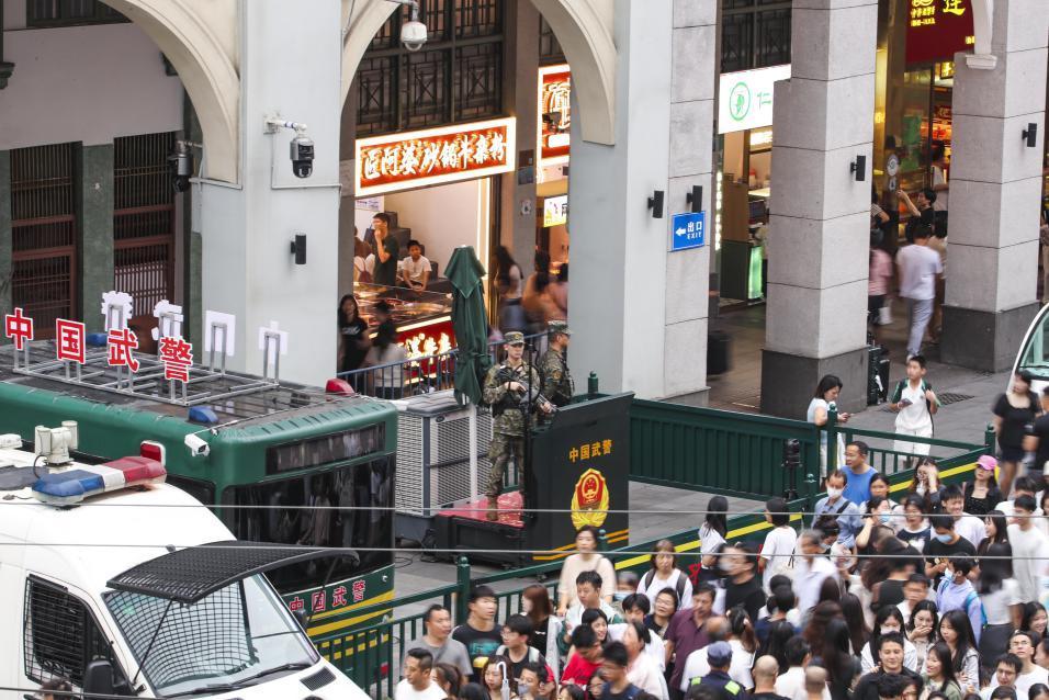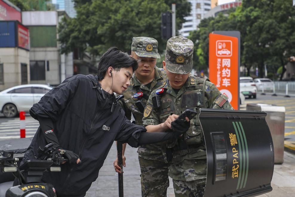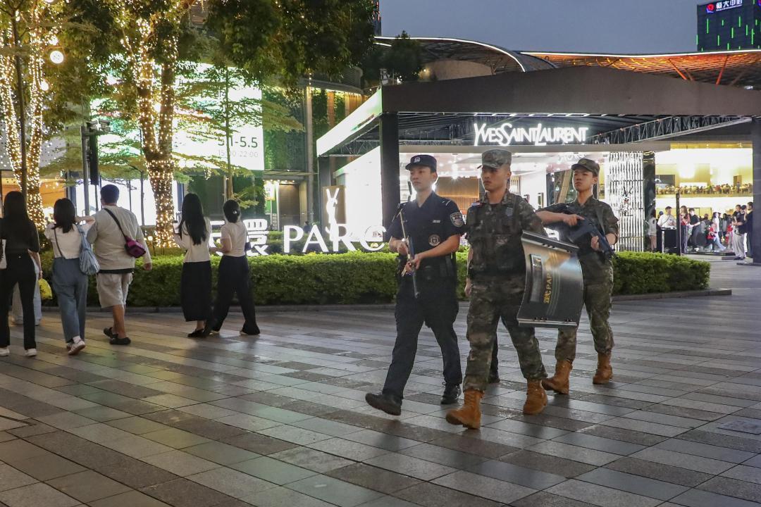 随着“五一”假期的到来,天河路商圈客流量也迎来了高峰。武警广州支队官兵采取车巡、步巡相结合的方式,坚持依法执勤、文明执勤,全力做好武装巡逻、安全警戒等任务,以高度的警惕意识、过硬的能力素质、良好的作风形象,为游客观光旅游筑起一道可靠的安全屏障。