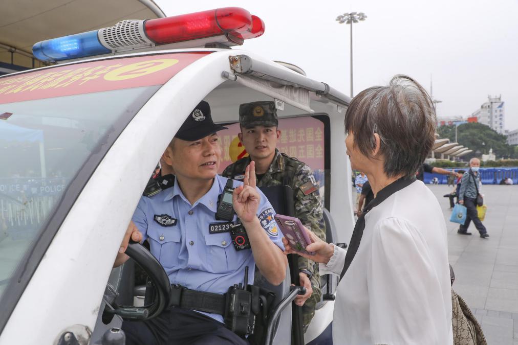 “花城广场执勤情况正常……”5月1日20时10分,带队干部通过语音对讲系统,实时向上报告执勤情况。在被誉为广州“城市会客厅”的花城广场,前来游玩参观的游客更是络绎不绝。巡逻组除了正常的巡逻外,还要在重要路口、重点区域进行警戒、防控,确保游客出行安全。