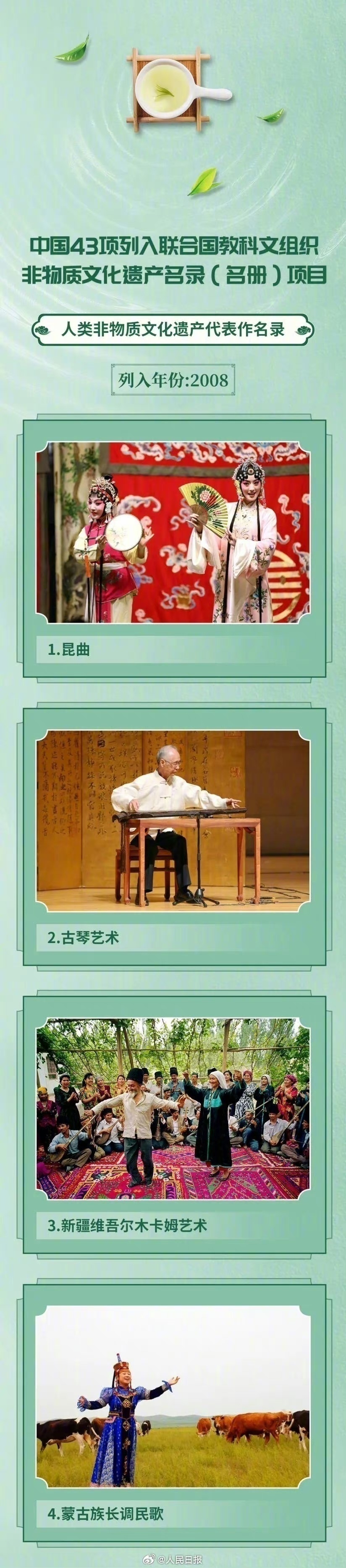 五一假期出行,你感受到了哪些非遗文化?截至目前,我国共有43个项目列入联合国教科文组织非物质文化遗产名录、名册,居世界第一。戳图了解↓↓