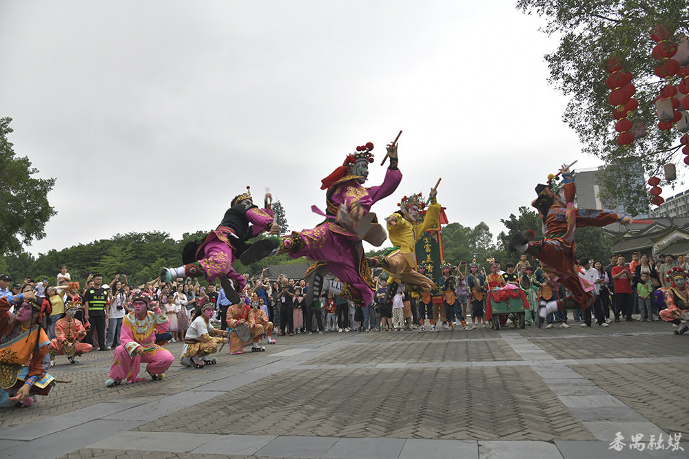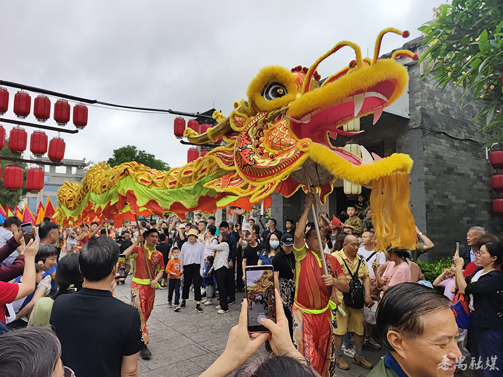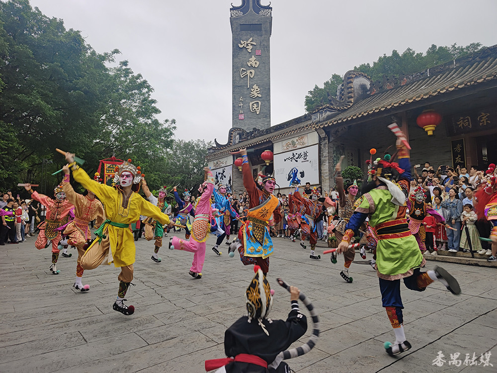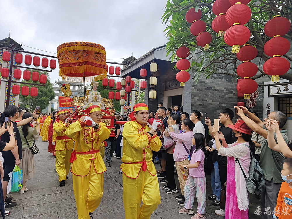 5月1日(农历三月二十三),恰逢妈祖林默1064年诞辰,岭南印象园为市民游客呈现一场盛况空前的“妈祖赐福巡安游”特色民俗表演。下午3时许,记者在岭南印象园看到,醒狮队、贺旗队、灯笼队、汉服队、旗袍队等方阵在岭南印象园龙舟池广场集结,盛大的妈祖赐福巡安游队伍从龙舟池广场出发,途径文昌桥、状元桥、三圣宫、人字街、瞭望塔、环园步道,到达天后宫,百人巡游队伍声势浩大,热闹非凡,吸引了大批市民游客沿途观看,近距离感受妈祖文化魅力与民俗巡游盛宴。
