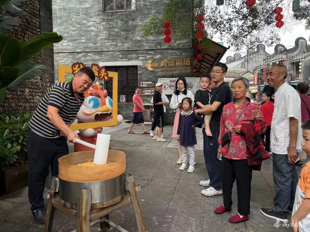 “妈祖巡游和英歌舞表演很精彩啊,我们平时很少机会体验这些民俗活动,所以孩子都特意穿上汉服过来游玩,感受一下这里的热闹气氛。”市民黎女士告诉记者,岭南印象园推出的民俗活动很适合亲子家庭游玩,也可以让孩子多了解传统的岭南文化。