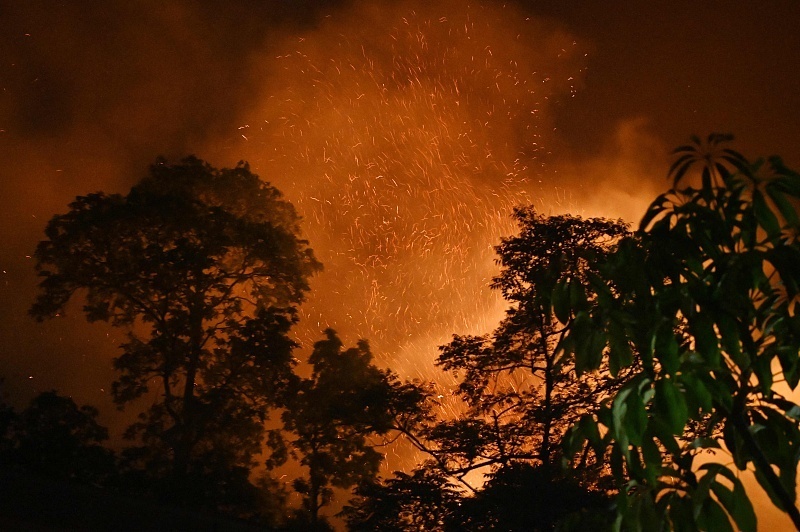 ▲磅士卑省一座军事基地的弹药库4月27日发生爆炸