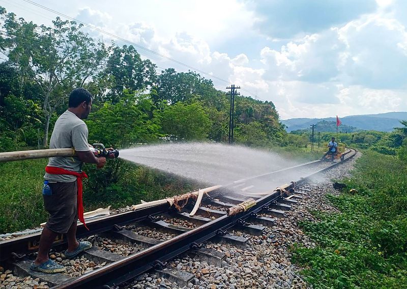 同在4月30日,泰国南部那空是贪玛叻府气温达到41摄氏度。泰国国家铁路局说,“极端高温”当天导致隆披汶-考春通铁路部分路轨发生变形,铁路工人用水和冰给路轨降温,设法矫正。浇了一个小时水后,这段路轨才可恢复使用。