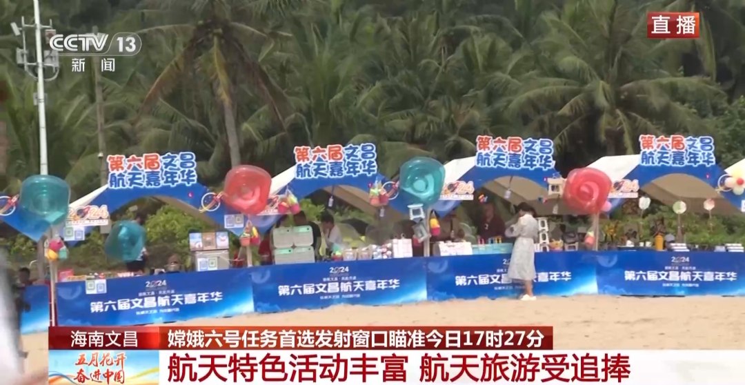 位于海南文昌市龙楼镇的文昌航天发射场,是我国第四个航天发射场,也是我国首个开放性滨海航天发射基地。每当有火箭发射任务,来自全国各地的游客和航天爱好者都可以在海滩看火箭发射。这个“五一”假期,刚好遇上了发射日,吸引了众多游客来到文昌“追火箭”。