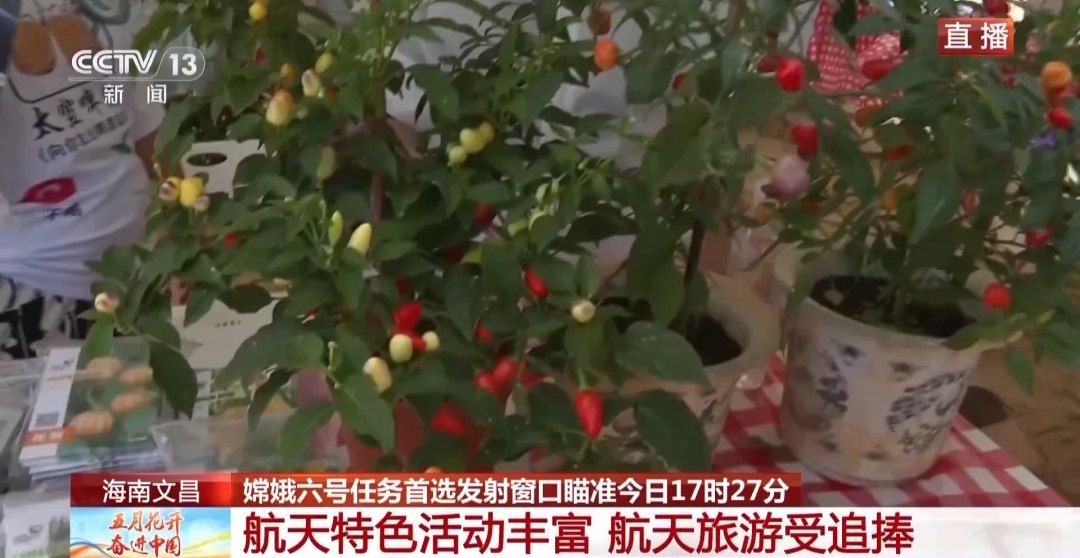 现场展示的小辣椒可不一般,它们都是上过太空的种子培育出来的太空作物。在文昌有一个航天育种中心,这些作物都是在那里种植培养的。近年来,文昌依托火箭发射优势,联动航天育种中心、航天科普中心等,大力发展航天旅游、研学体验等活动。每当发射日,龙楼镇都会涌来大批游客,这个小镇越来越有名气,当地的航天旅游也受到各地游客的追捧。