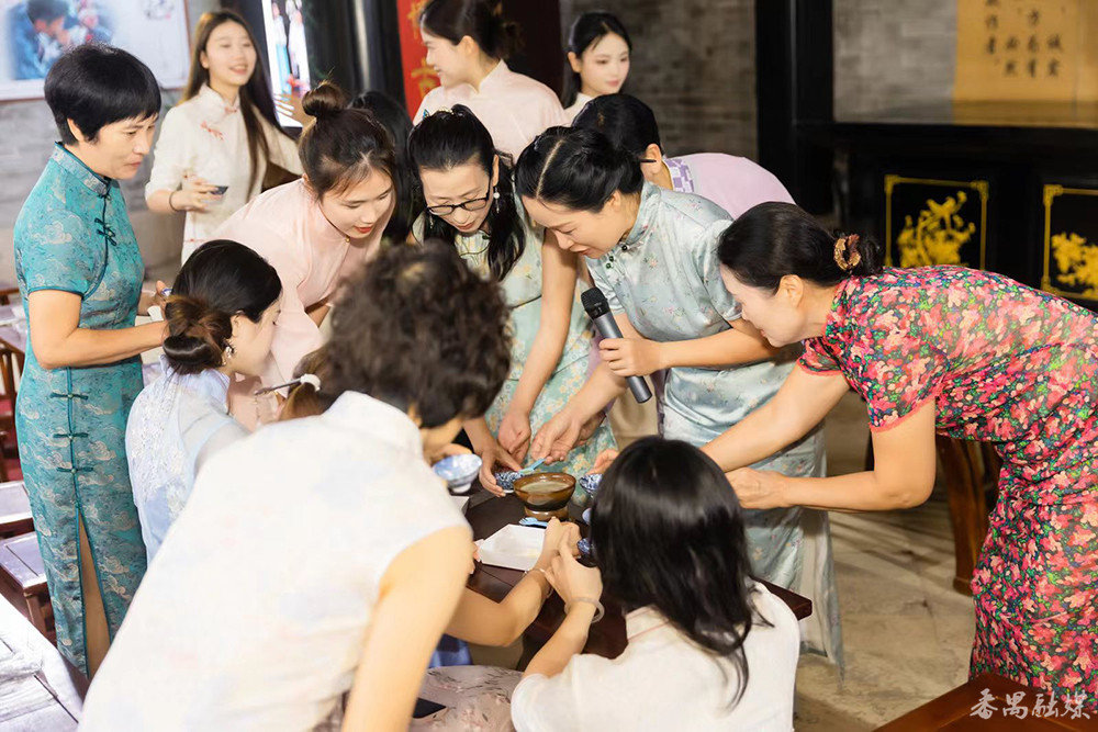 5月1日开展的非遗景泰蓝掐丝珐琅画展,展出了非物质文化遗产景泰蓝掐丝珐琅画代表性传承人梁丽老师等人的作品近百件,题材涵盖人物、动物、景物、建筑等,类型多样,工艺精巧,让非遗爱好者一饱眼福。除了非遗手工艺集市,园区的旗袍舞蹈、汉服舞蹈等节目表演,与旗袍礼仪教学相结合,新颖有趣的形式,柔美优雅的舞姿,吸引了众多游客驻足观看。5月1日-2日下午的旗袍下午茶及掐丝珐琅画两场体验活动,也深受游客的喜爱与欢迎。