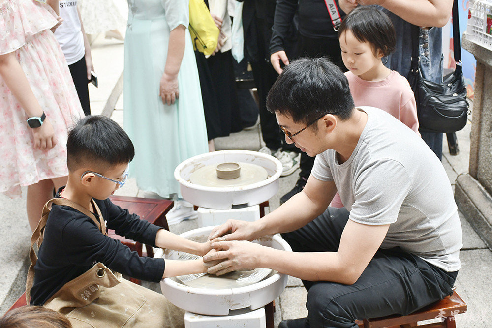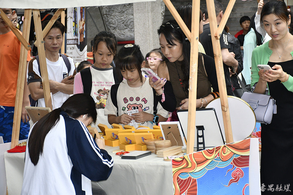 “五一”假期,余荫山房设置的非遗手工艺集市,展示满洲窗、灰塑、掐丝珐琅、广绣、漆艺五种非遗项目工艺品,非遗项目的传承人现身集市中,带游客一同体验这些非遗项目,吸引了不少游客围观及体验,让游客切身感受非遗工艺的奇妙。