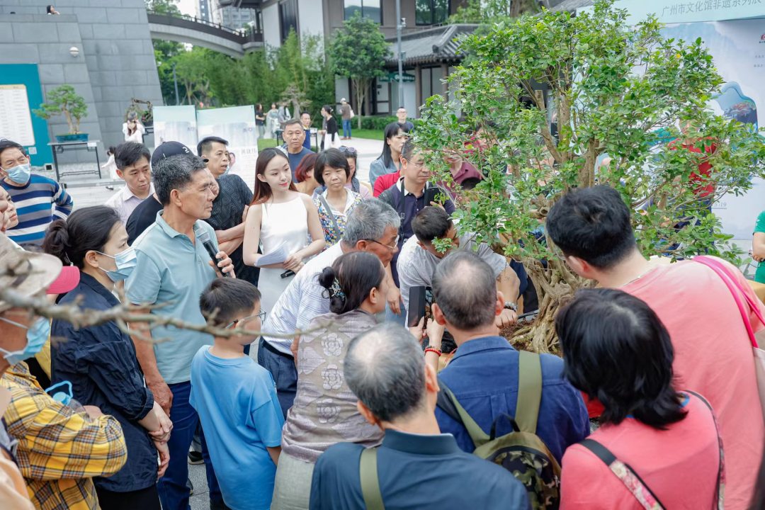 5月2日下午,主办方在广州市文化馆中心阁前广场举办了本次“粤华满枝头——岭南盆景艺术精品展”开幕式,广州盆景协会会长罗小冬、广州盆景协会顾问黄就伟、广州盆景协会常务副会长陆志泉、广东省省级非遗代表性项目岭南盆景代表性传承人陆志伟等四位中国盆景艺术大师出席。