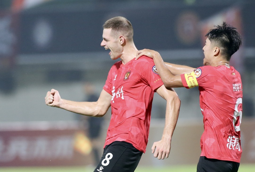 易地再战,广州队开始加强压逼和进攻。第51分钟,广州队的外援贝尼亚罗萨右路下底传中,大连英博中卫崔仲凯倒地铲球未果,随后用手拨倒了广州队的锋将,结果主裁判果断吹罚点球。广州队的外援阿雷格里亚一蹴而就,把比分改写为1比0。