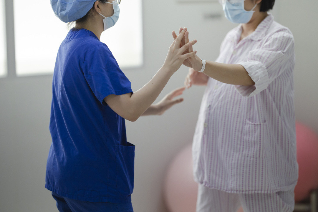 导乐服务通过生育舞蹈、穴位按摩等方式缓解产妇的疼痛和焦虑。资料图片