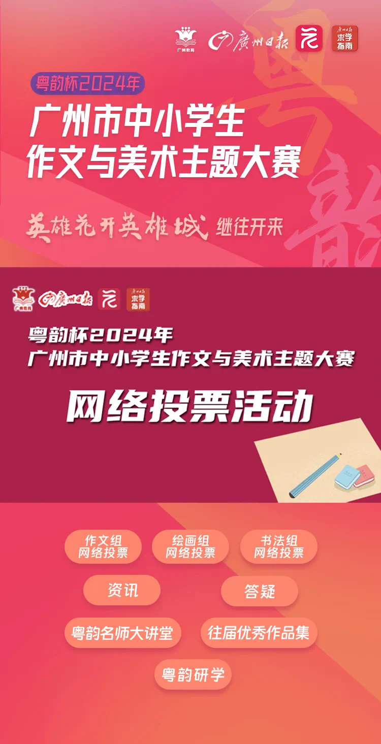备受瞩目的第二届“粤韵杯”广州市中小学生作文与美术主题大赛在4月20日刚落下初赛帷幕,5月6日起,活动正式开启网络投票。