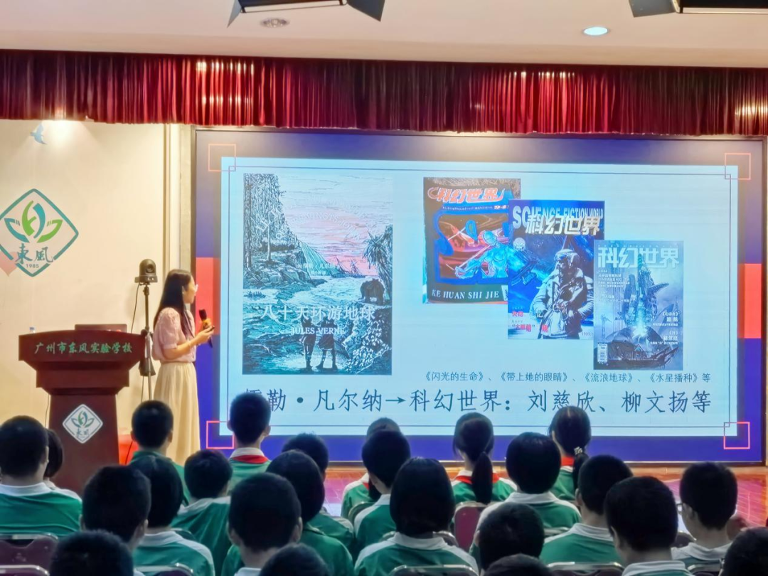 近日,新世纪出版社与广东省小作家协会携手星云奖、光年奖得主,新锐科幻作家路航,在广州市东风实验学校开展“我在广东写科幻暨青少年文学播种计划2024年度文学志愿者服务新时代文明实践”主题分享会,并携其长篇小说作品《未来少年科幻系列:星际醒狮队》与同学们互动交流。活动现场科幻文学氛围浓郁,读者反响热烈。
