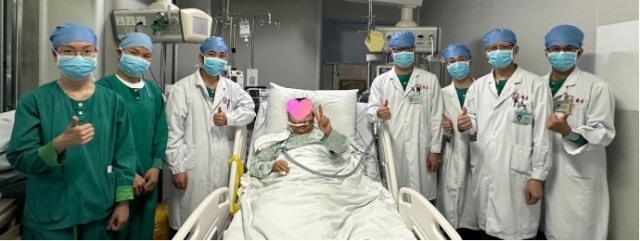 杜姨转出重症医学科前与医护团队合影留念