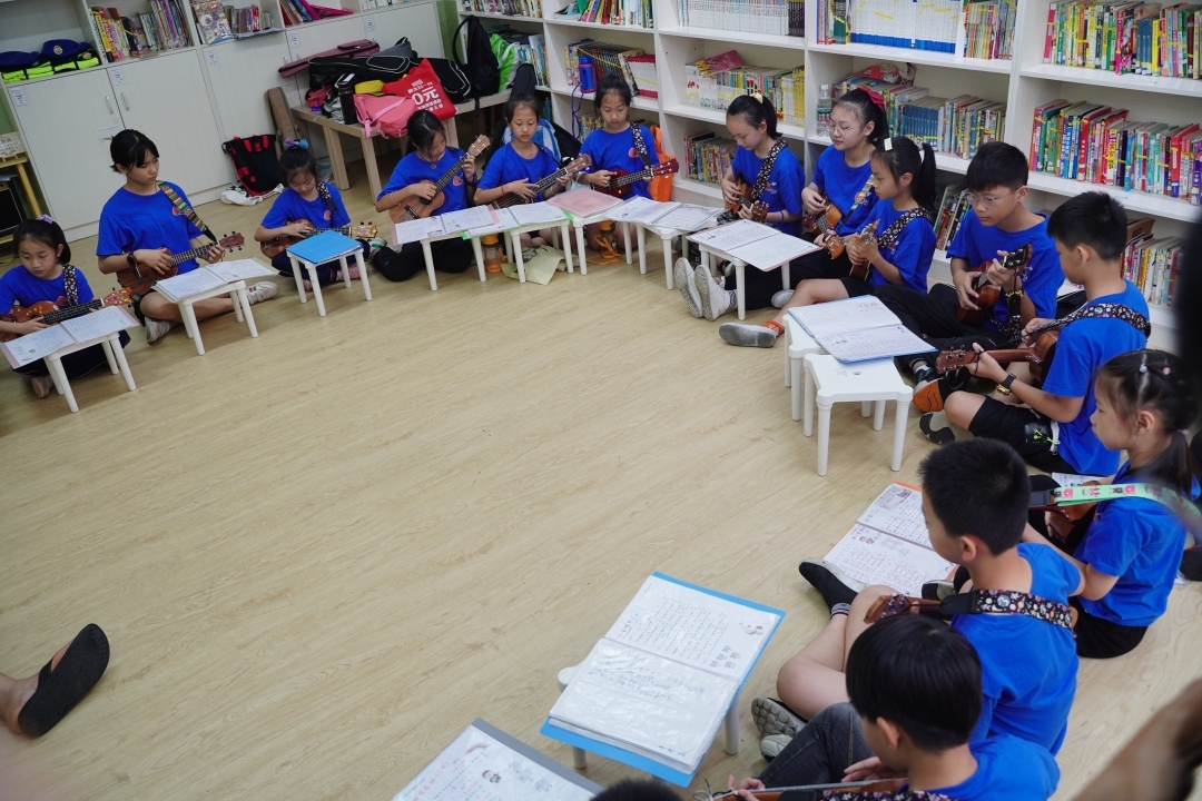 为了应对来穗青少年社区融入弱、实践参与不足的问题,团海珠区委与海珠区无界艺术公益创新发展中心合作,启动了“乐·无界”音乐计划,成立了以来穗青少年为主体的小雁子尤克里里乐队。乐队请来专业老师,每周六教授队员弹奏尤克里里、演唱。今年共开展了培训活动12场,服务来穗青少年超过400人次。如今,这支乐队经常走出城中村,参与公益表演活动。来穗青少年不仅在此收获了友谊,还习得技能,获得了更多的展示机会。
